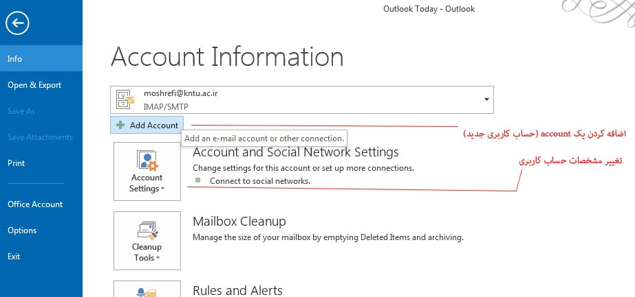 روش اتصال Webmail دانشگاه به Microsoft Outlook