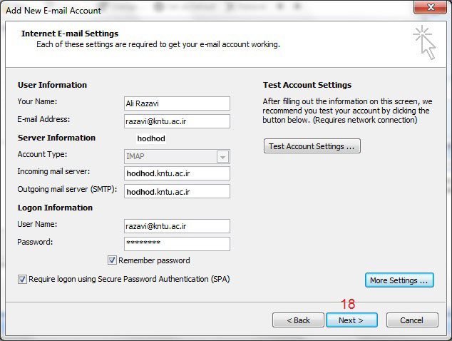 smtp server: hodhod.kntu.ac.ir
